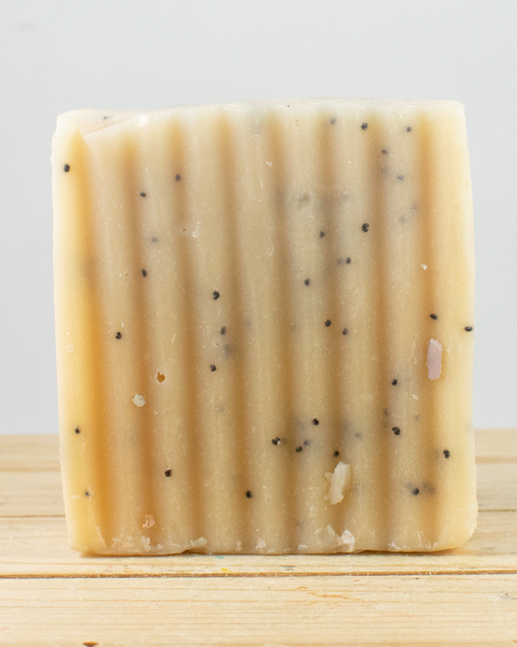 Goat’s Milk, Olive Oil, Coconut Oil, Palm Oil (sustainably harvested), Shea Butter, Castor Oil, Essential Oils, and responsibly sourced dye-free Mica